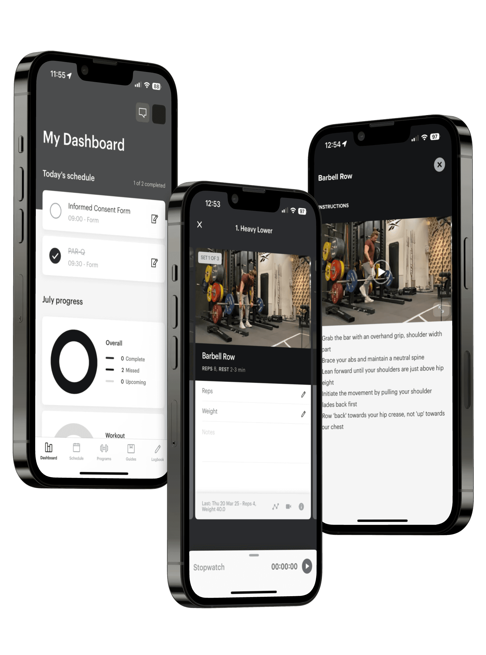 Je logt je trainingsresultaten in een makkelijk te gebruiken app, zodat we jouw progressie beiden nauw in de gaten kunnen houden. Compleet met video’s en instructies bij alle oefeningen.